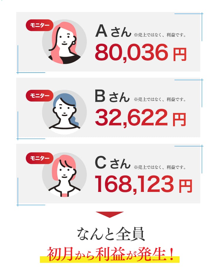 初月から利益が発生しました。